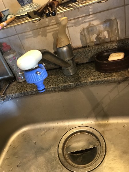 上関町祝島 台所蛇口水漏れ、交換工事施工前